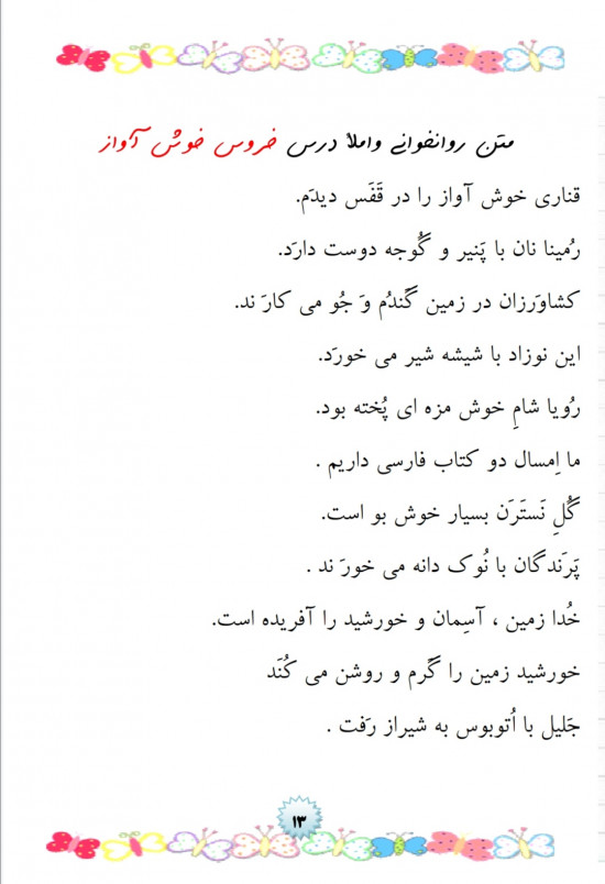 متن روان خوانی : اُ استثنا(خروس خوش آواز)