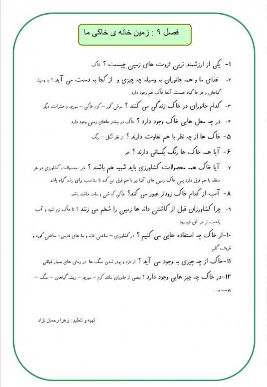 علوم فصل 9 : زمین خانه ی خاکی ما