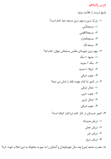 مطالعات : ارزشیابی دوره ای درس اول تا دهم
