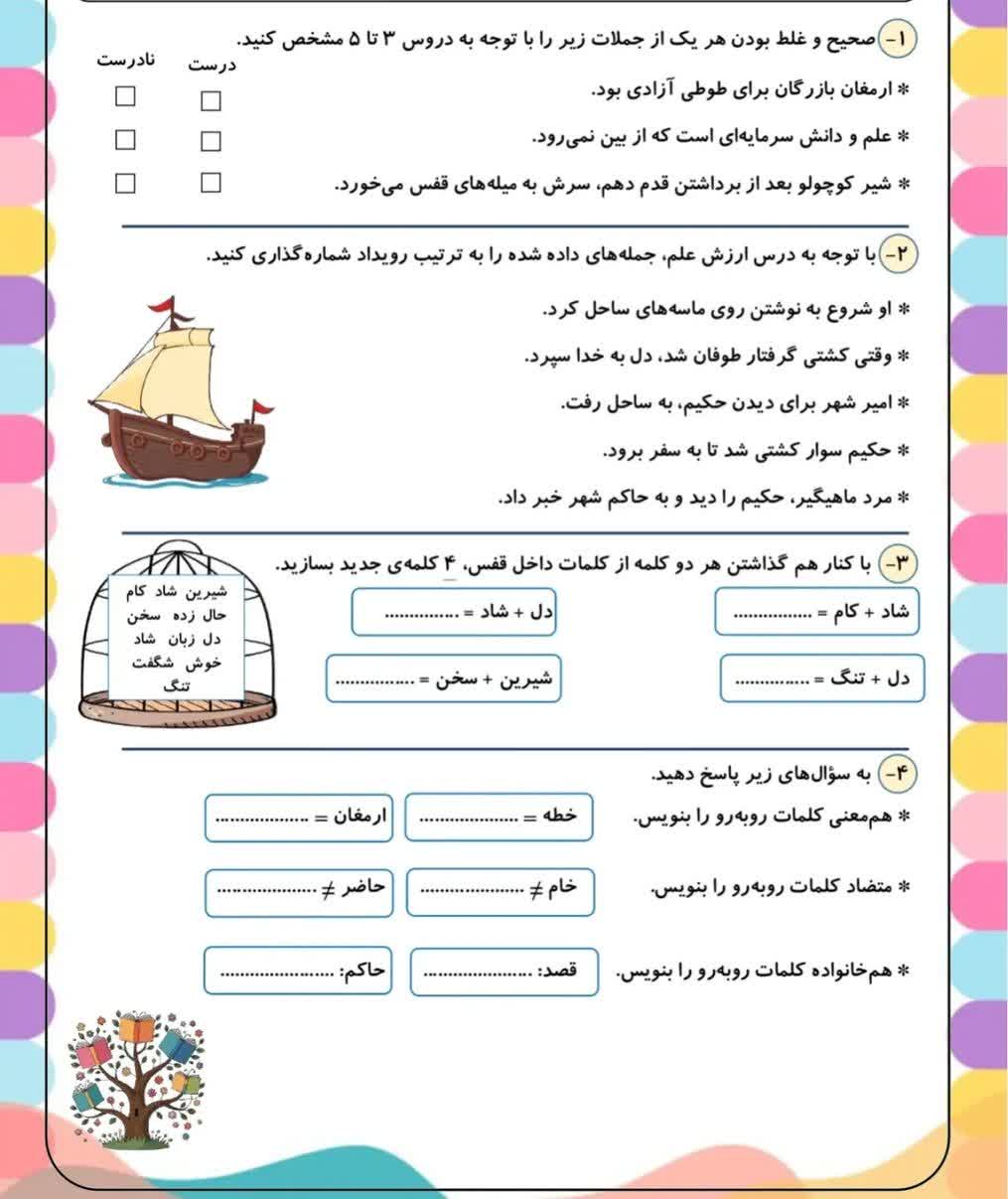 کلاس چهارم ب _ فارسی _ دانش زبانی درس ارزش علم