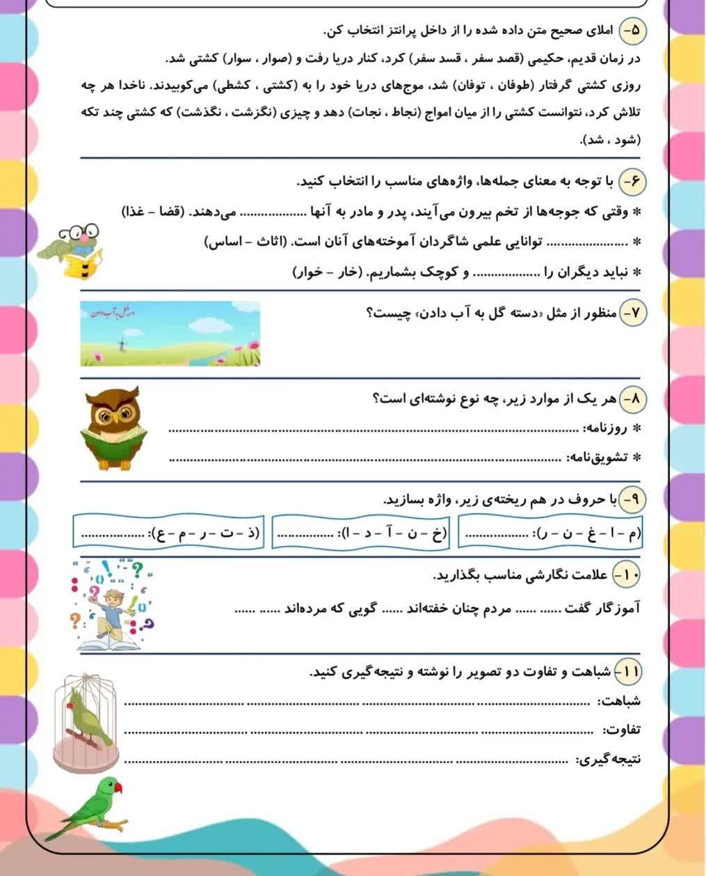 کلاس چهارم ب فارسی وازه آموزی _ نمایش _ رهایی ااز قفس