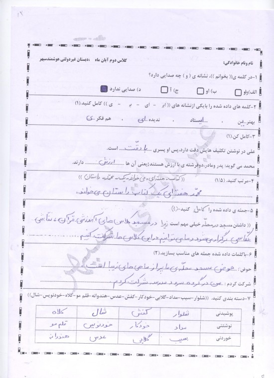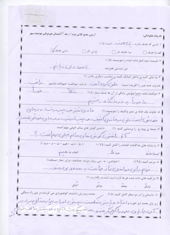 نمونه سوالات