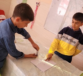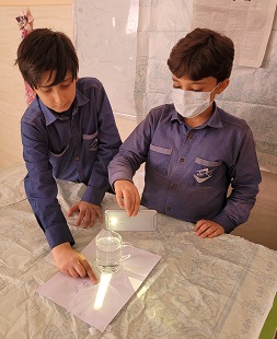 تشکیل رنگین کمان با چشمه نور مصنوعی و آب و لیوان