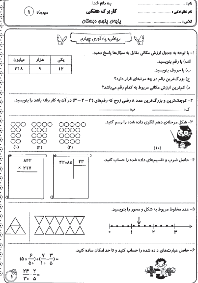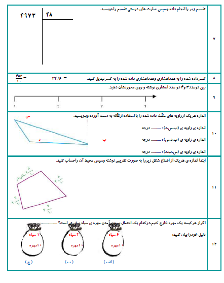 یادآوری درس ریاضی سال چهارم قسمت هفتم