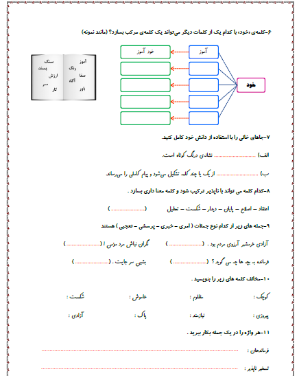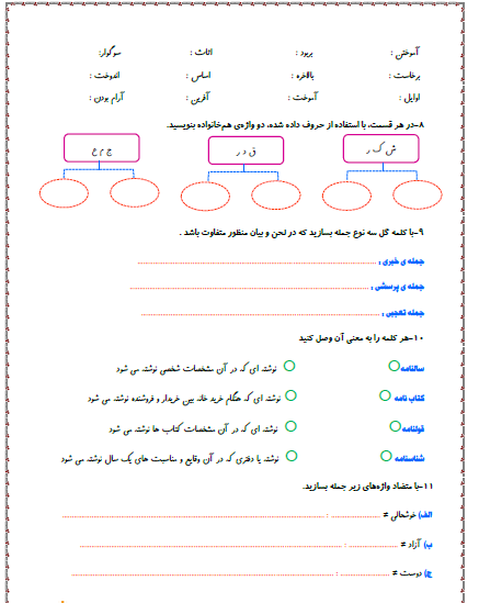 پاسخنامه ی سوالات یادآوری درس فارسی