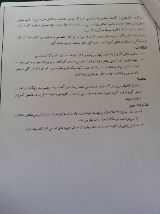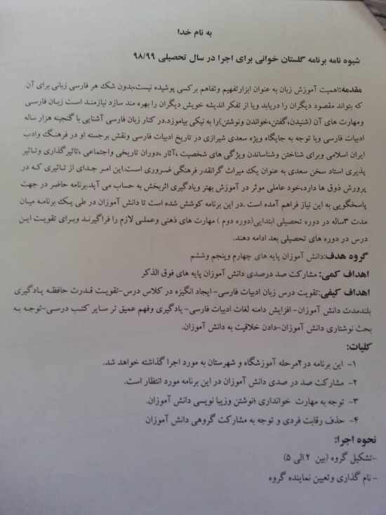 اجرای طرح گلستان خوانی