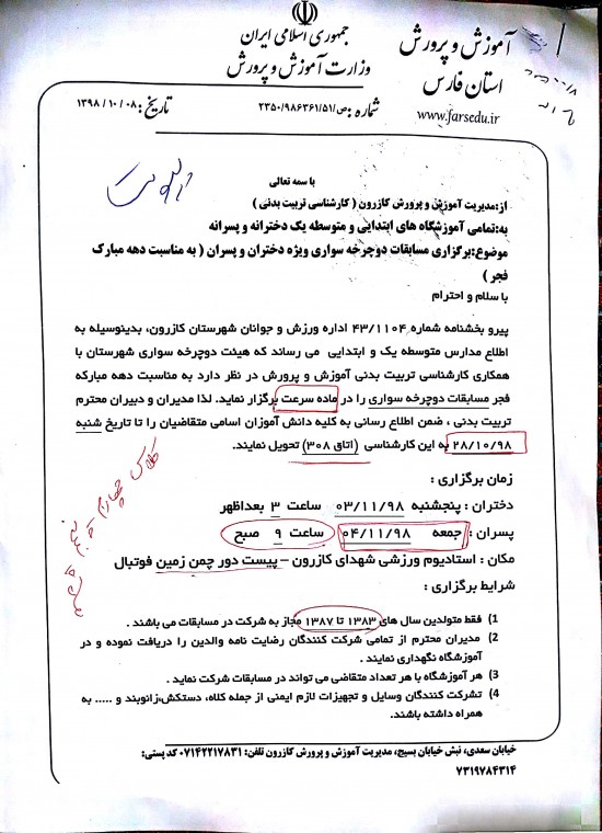 شیوه نامه ی مسابقه ی دوچرخه سواری