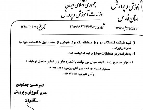 برگزاری جشنواره ی دانش آموزی نوجوان سالم