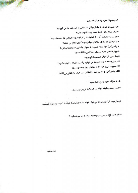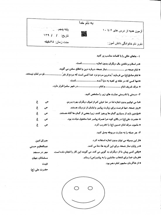 آزمون آنلاین دروس 4 الی 6 هدیه های آسمانی