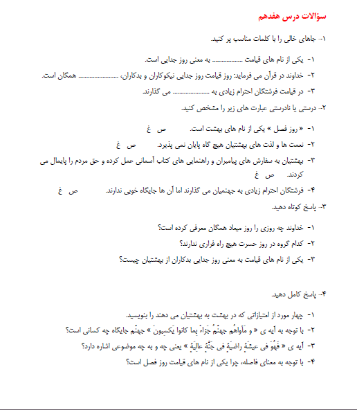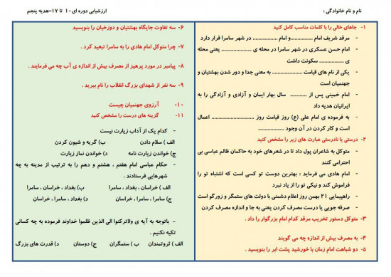 ارزشیابی دوره ای 10 تا 17 هدیه