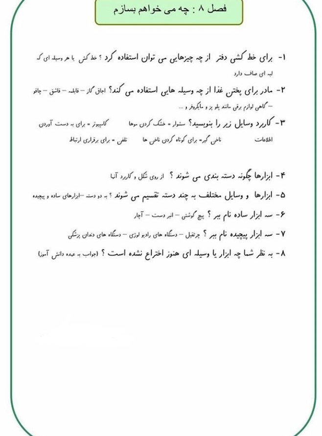 علوم:نمونه سوال فصل 8