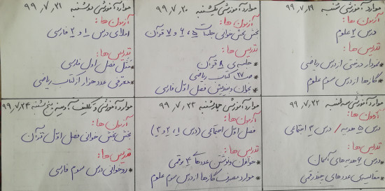 برنامه ی هفتگی از تاریخ 19 لغایت 25 مهرماه کلاس سوم الف