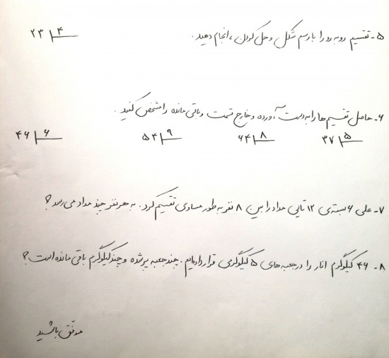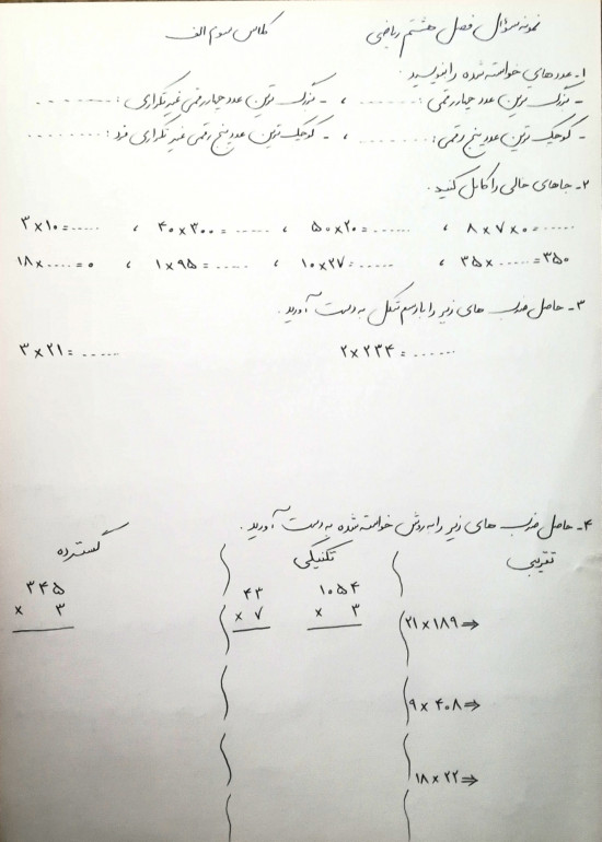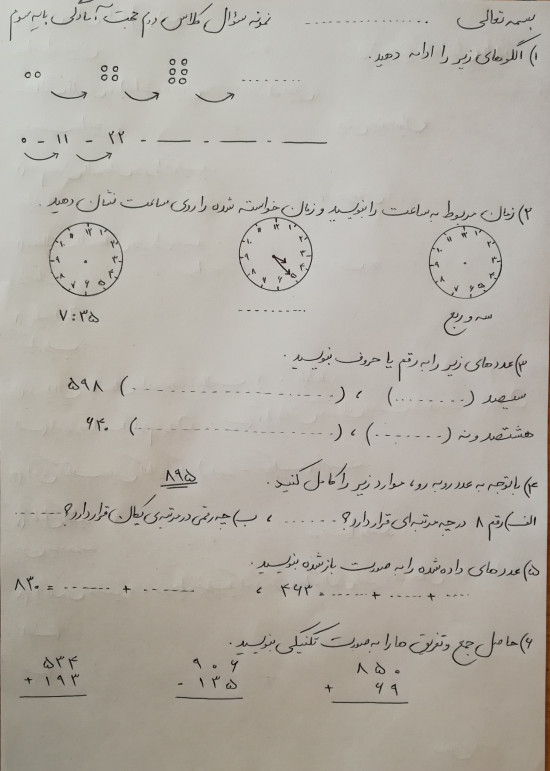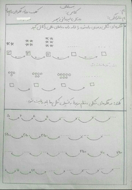 نمونه سؤال. یاضی ازمبحث الگویابی