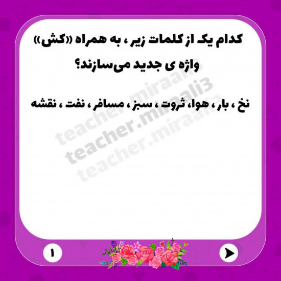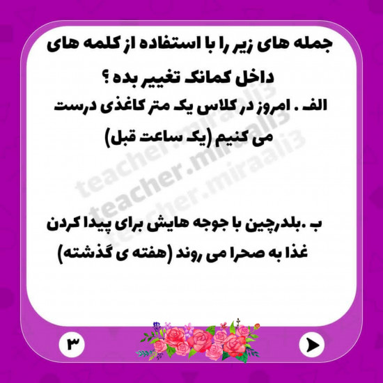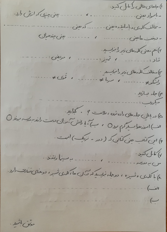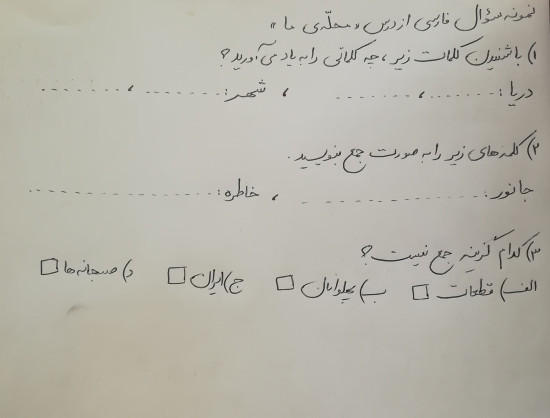 نمونه سؤال نکات دستوری ونگارشی فارسی از درس اول