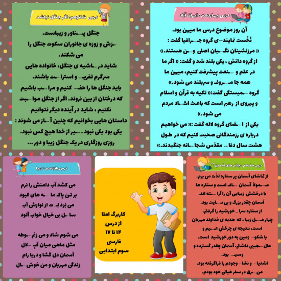 کاربرگ املا از دروس ۱۴ تا ۱۷