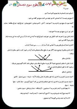 نمونه سوالات درس هفت علوم:نور ومشاهده اجسام
