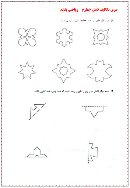 ریاضی : نمونه سوال فصل چهارم تقارن محوری