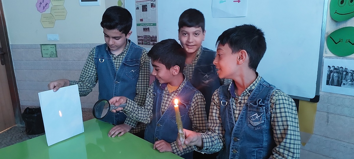 درس سوم تصویر شعله شمع در عدسی (پنجم الف)