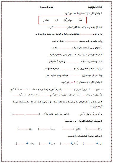 فارسی : نمونه سوال درس دومفارسی : نمونه سوال درس دوم نظرات خوانندگانتا کنون هیچ نظری درباره این مطلب ثبت نشده استنظر جدیدنام* ایمیلنظر* متن تصویر*