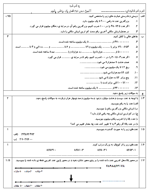 ریاضی : نمونه سوال