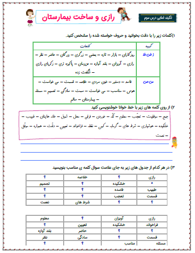 دیکته : درس سوم رازی و ساختن بیمارستان