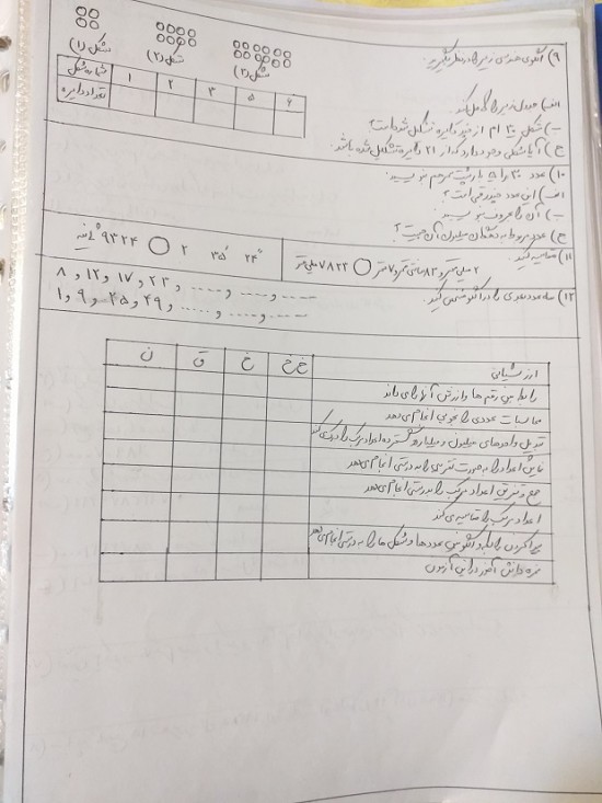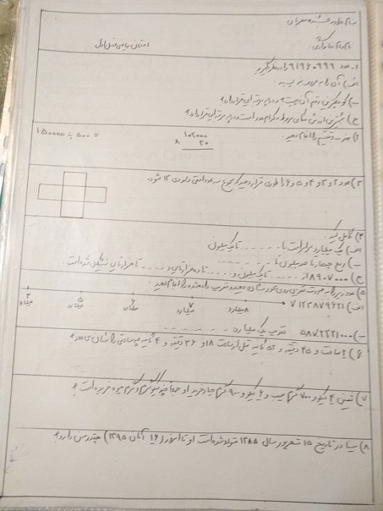 ریاضی : آزمون فصل اول