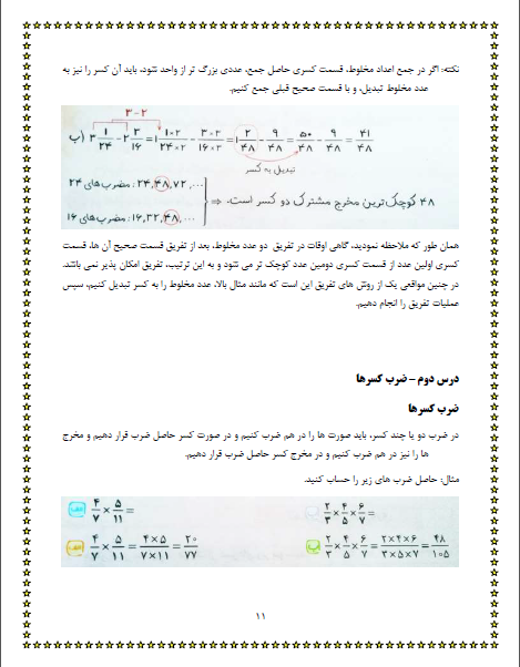 ریاضی : ضرب کسرها