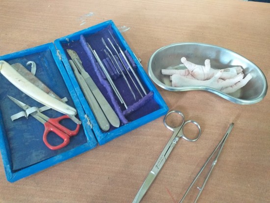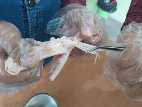 علوم : تشریح پای مرغ و نشان دادن مفصل و غضروف و رشته های محکم