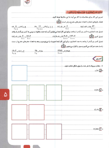ریاضی : فصل پنجم تبدیل عدد اعشاری به کسر