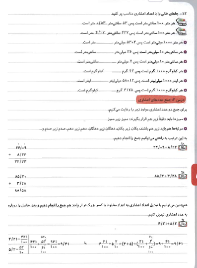 ریاضی : فصل پنجم جمع اعداد اعشاری