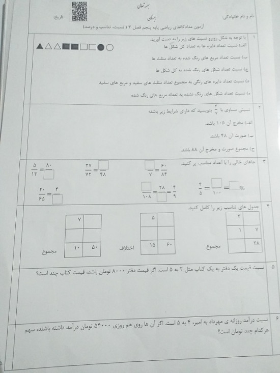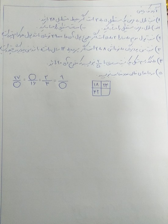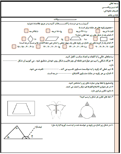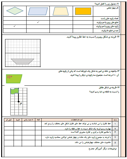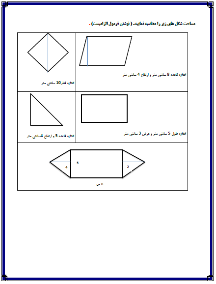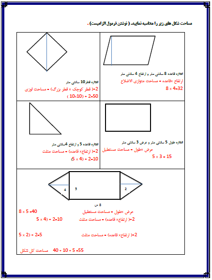 ریاضی : آزمونک فصل ششم مساحت لوزی