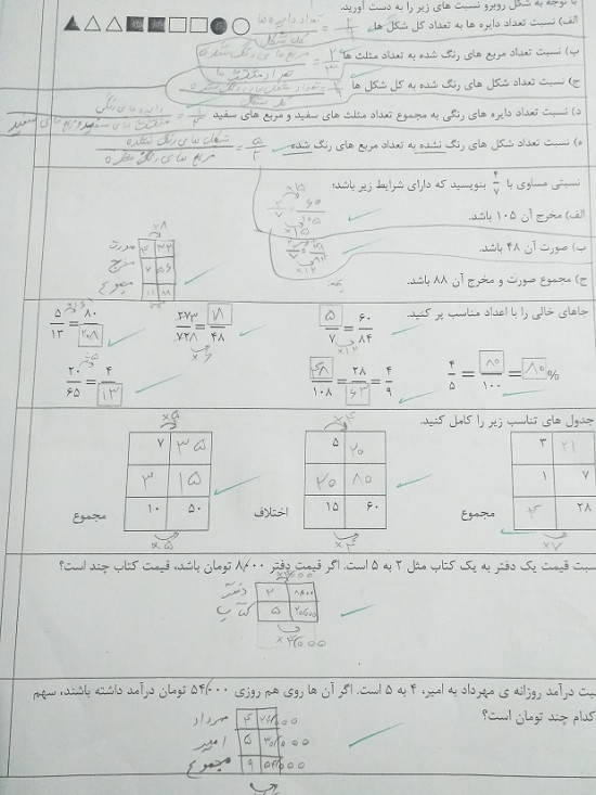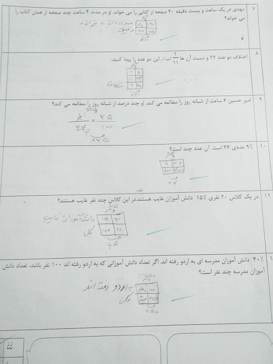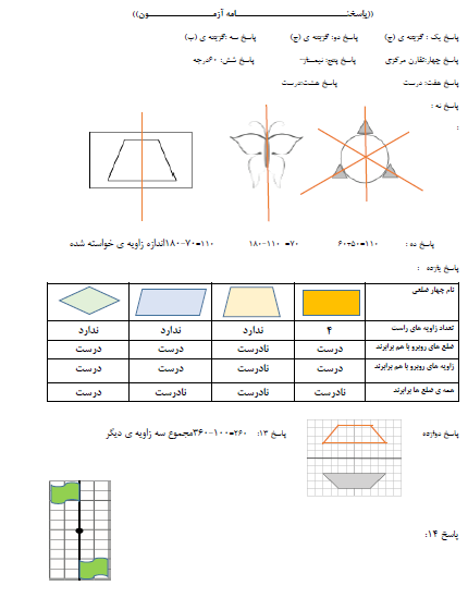 ریاضی : پاسخنامه آزمونک فصل ششم مساحت لوزی