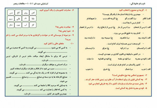 مطالعات : ارزشیابی دوره ای درس اول تا دهم