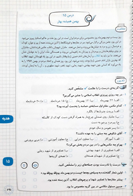 هدیه : درس پانزدهم بهمن همیشه بهار
