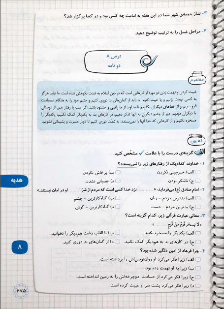 هدیه : درس هشتم دو نامه
