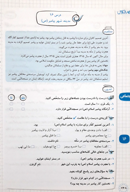 اجتماعی : درس شانزدهم مدینه شهر پیامبر(ص)