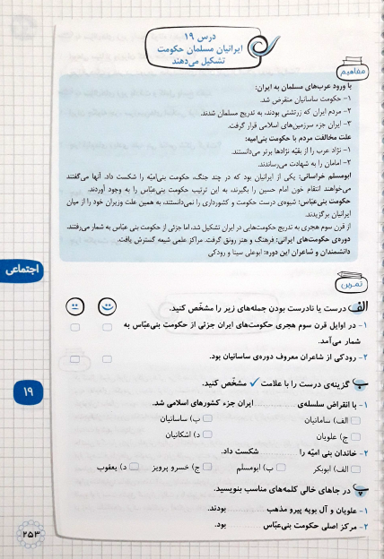 اجتماعی : درس نوزدهم ایرانیان مسلمان حکومت تشکیل می دهند