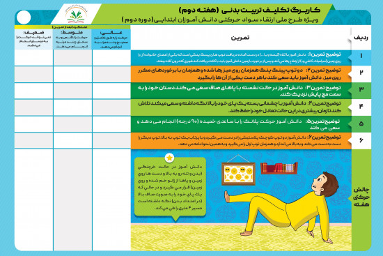 تصویر برنامه تمرینی سواد حرکتی _ دوره دوم _ هفته دوم _ جلسه چهارم