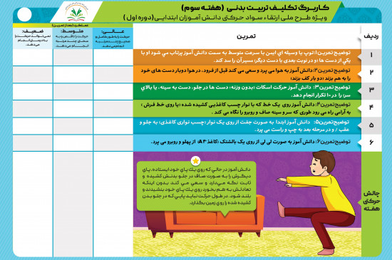 تصویر برنامه تمرینی سواد حرکتی _ دوره اول _ هفته سوم _ جلسه پنجم