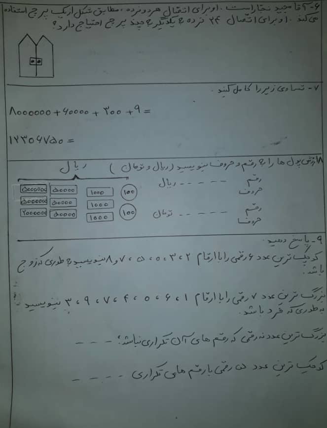 کلاس چهارم ب _ ریاضی _ مسئله نویسی کسر