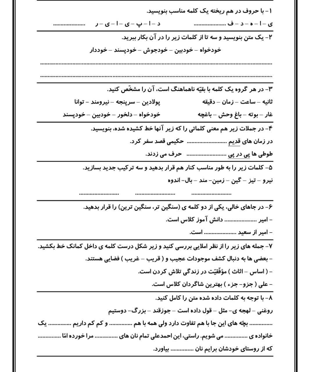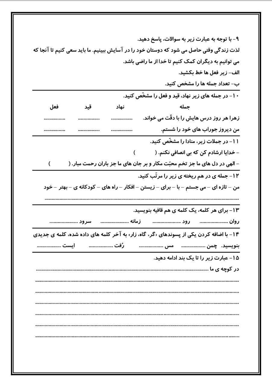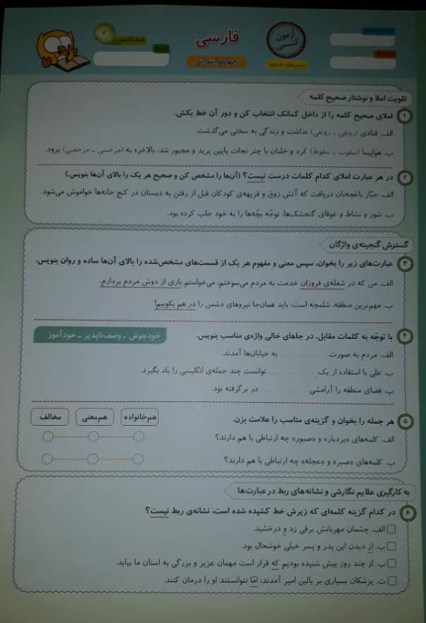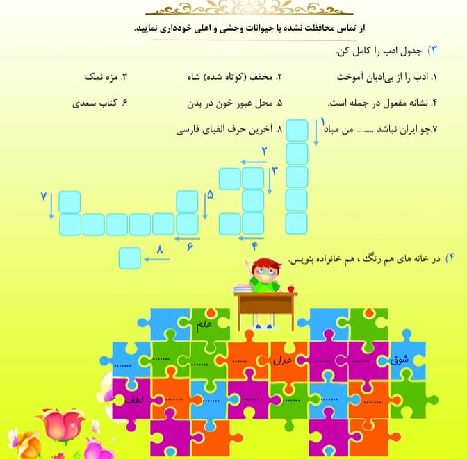 کلاس چهارم ب _ فارسی _ دانش زبانی درس ارزش علم
