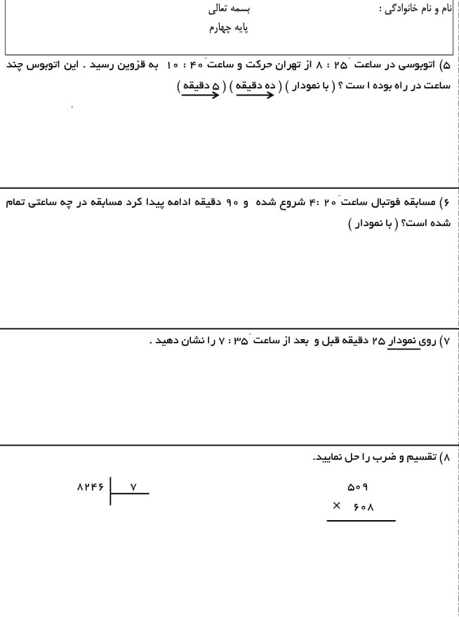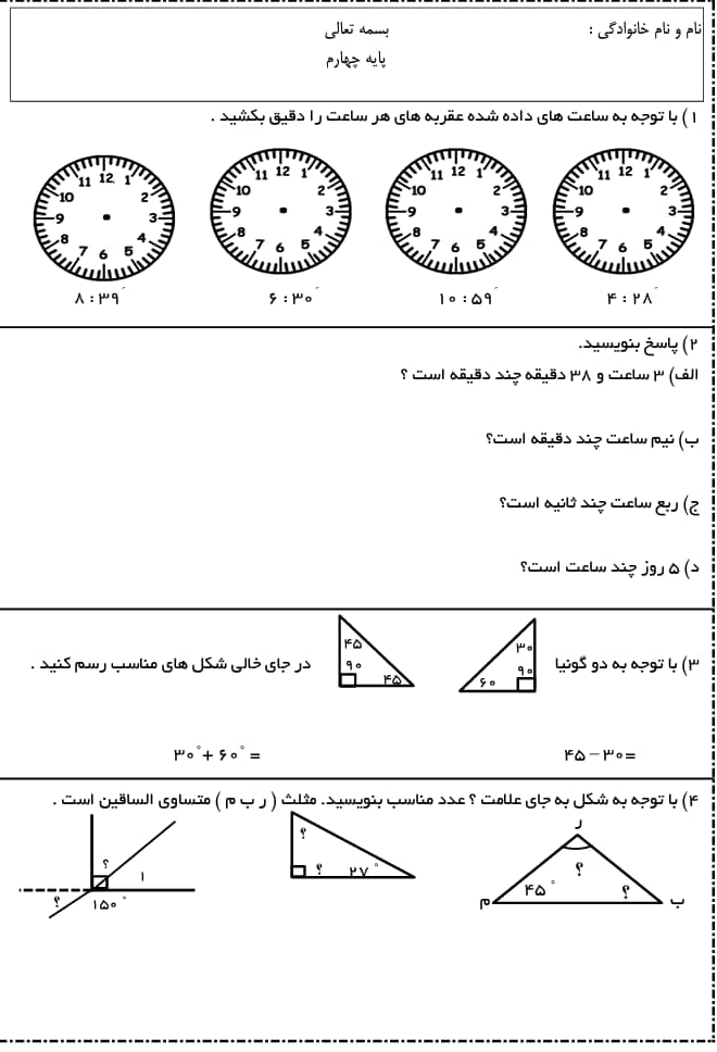 کلاس چهارم ب ریاضی عدد مخلوط ساعت 1