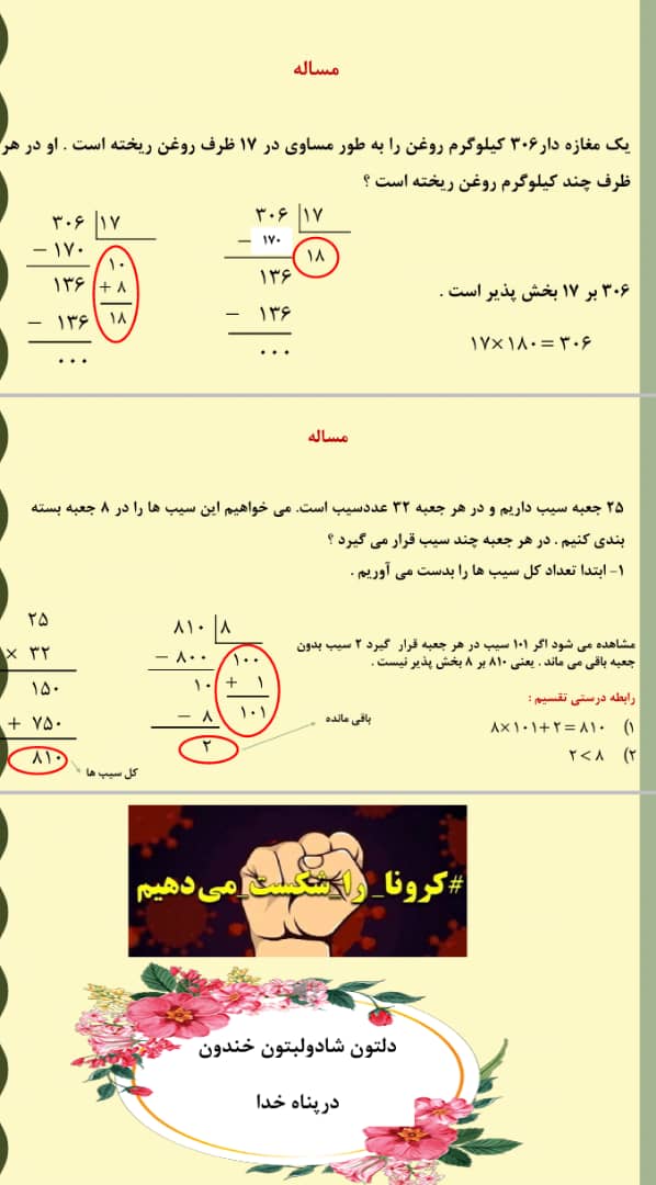 کلاس چهارم ب _ ریاضی _ حل مسئله های کسر