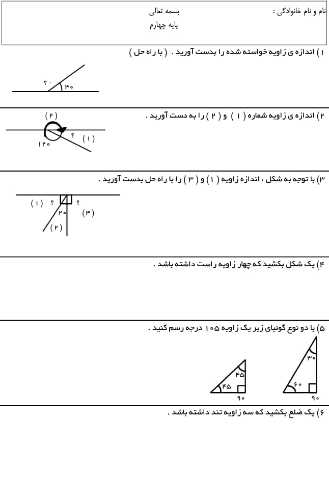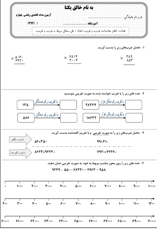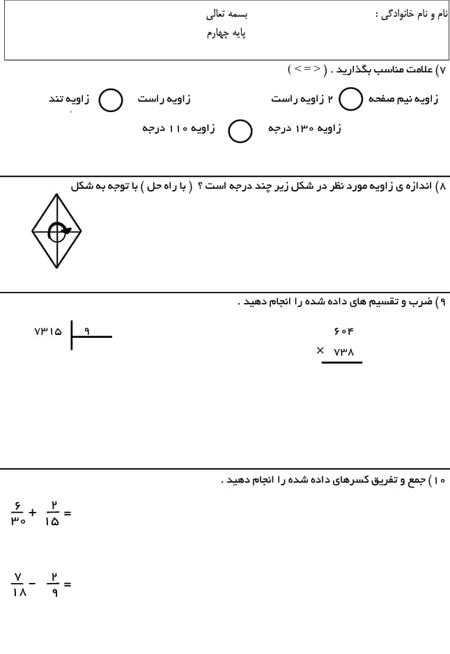 کلاس چهارم ب ریاضی مسئله های جمع و تفریق کسر