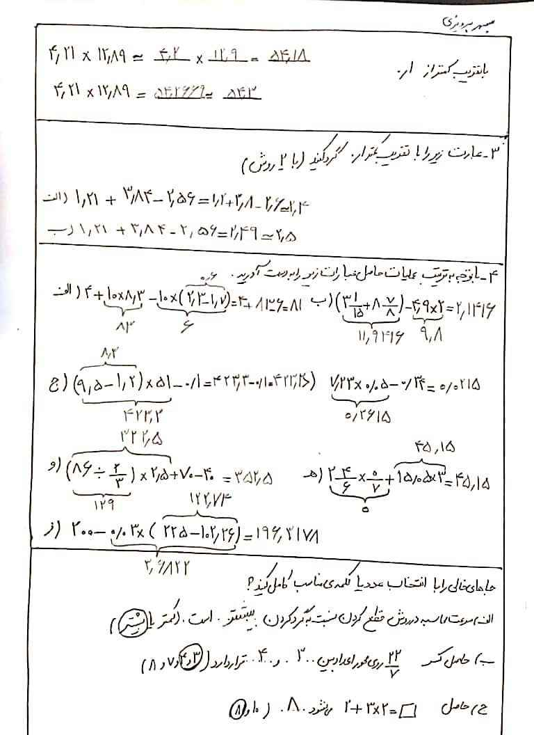 تمرین اولویت محاسباتی صفحه141 قسمت 1