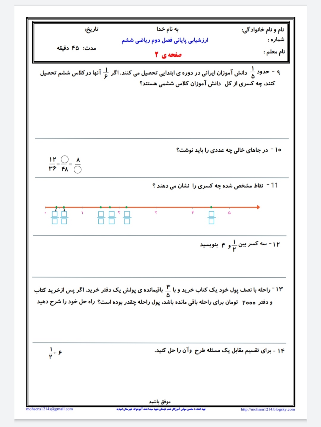 ریاضی ششم فصل2 کسرها صفحه26