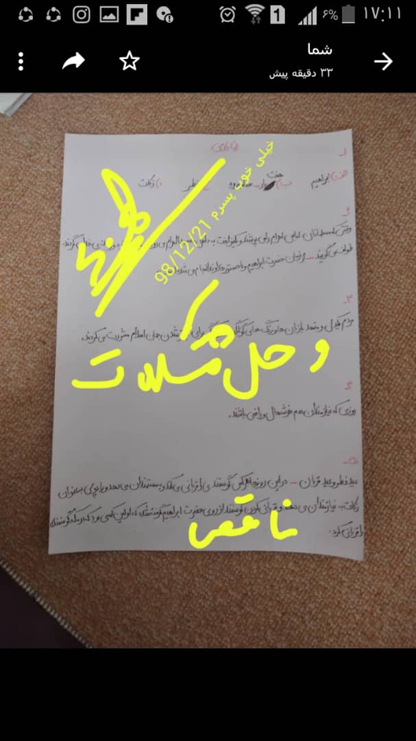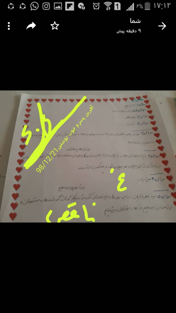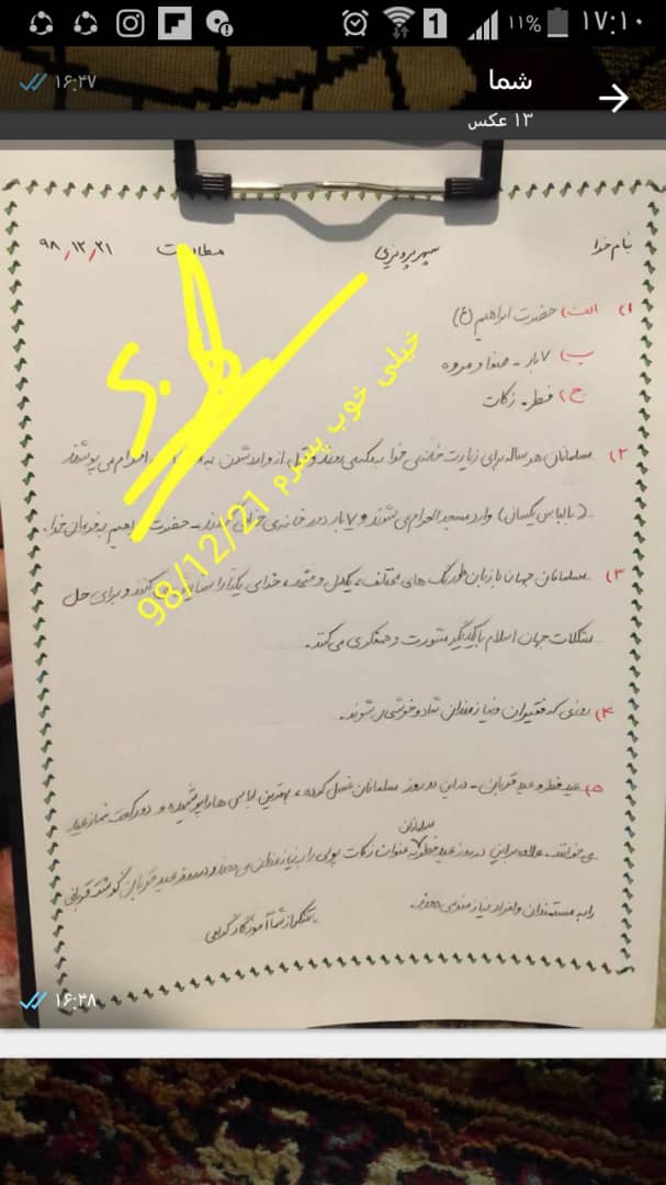تصحیح برگه های آزمونک درس 13 هدیه بصورت مجازی