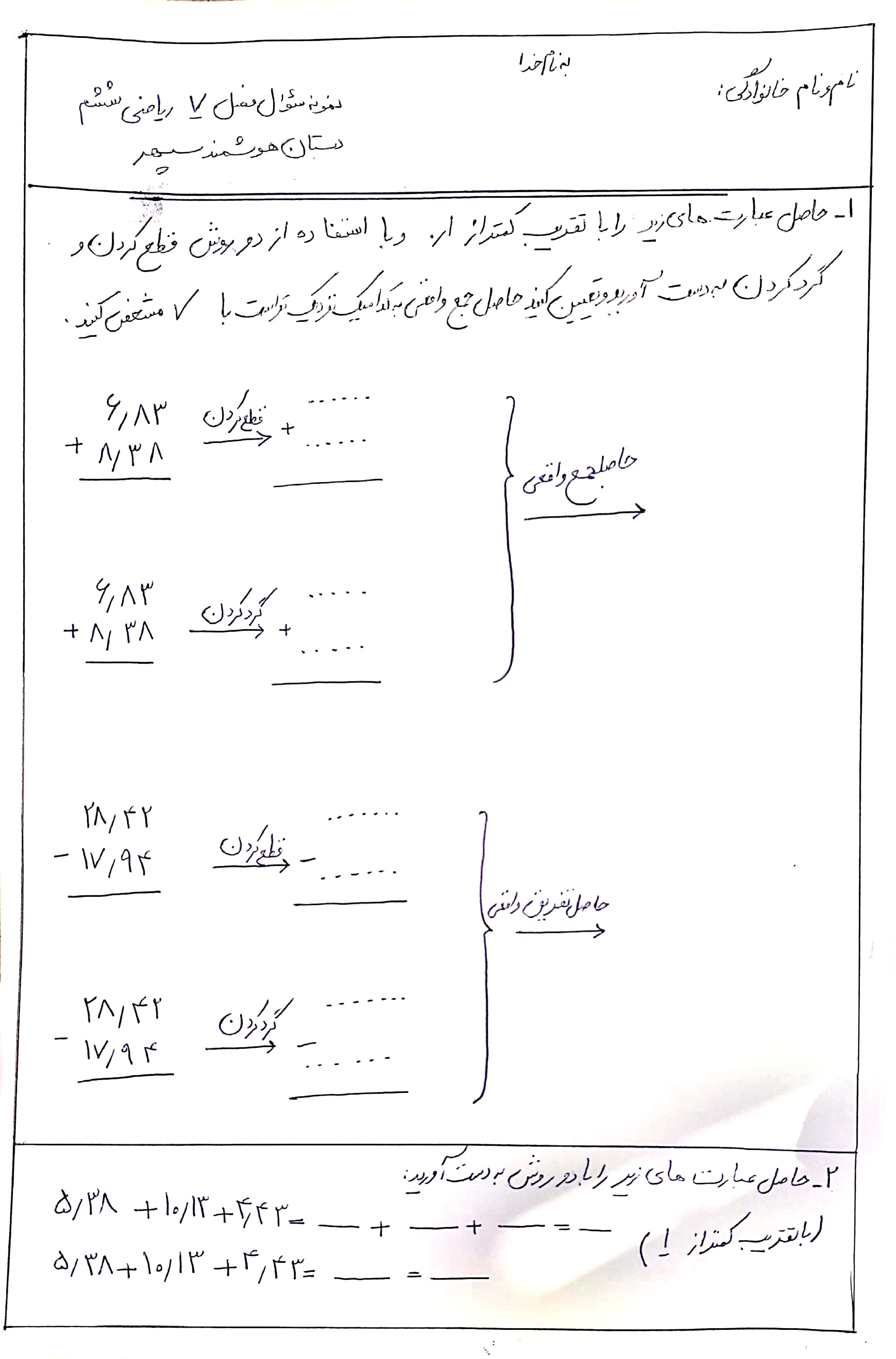 مشق ریاضی ششم