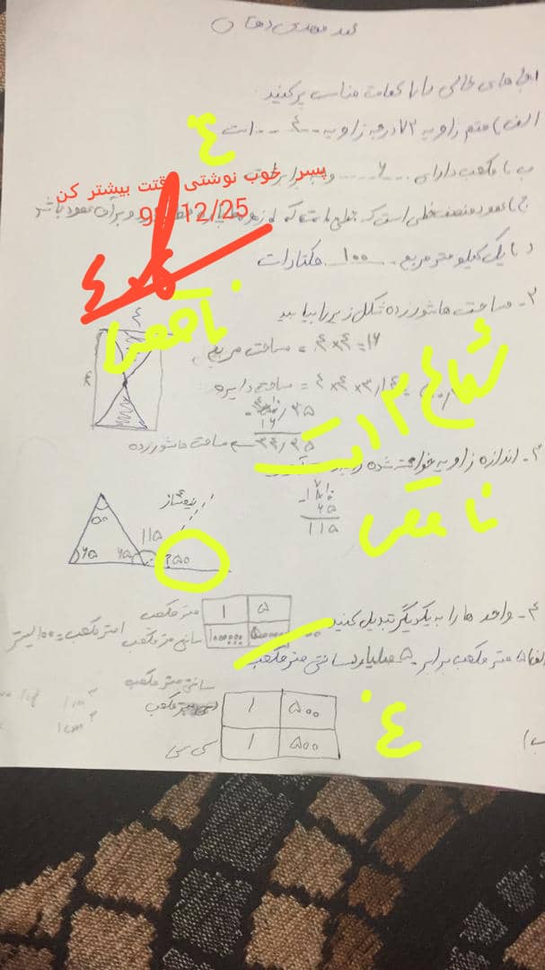 ریاضی ششم تمرین صفحه ۱۱۴قسمت ۱