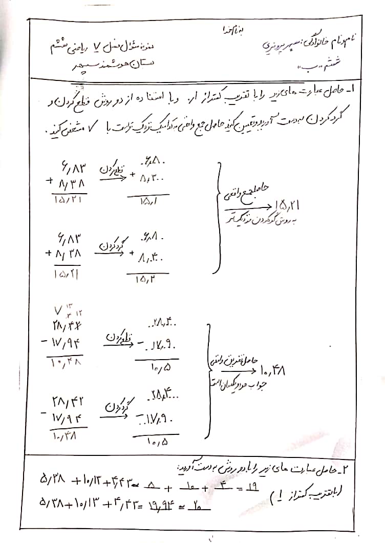 ریاضی ششم فصل 3 صفحه44 اعشار